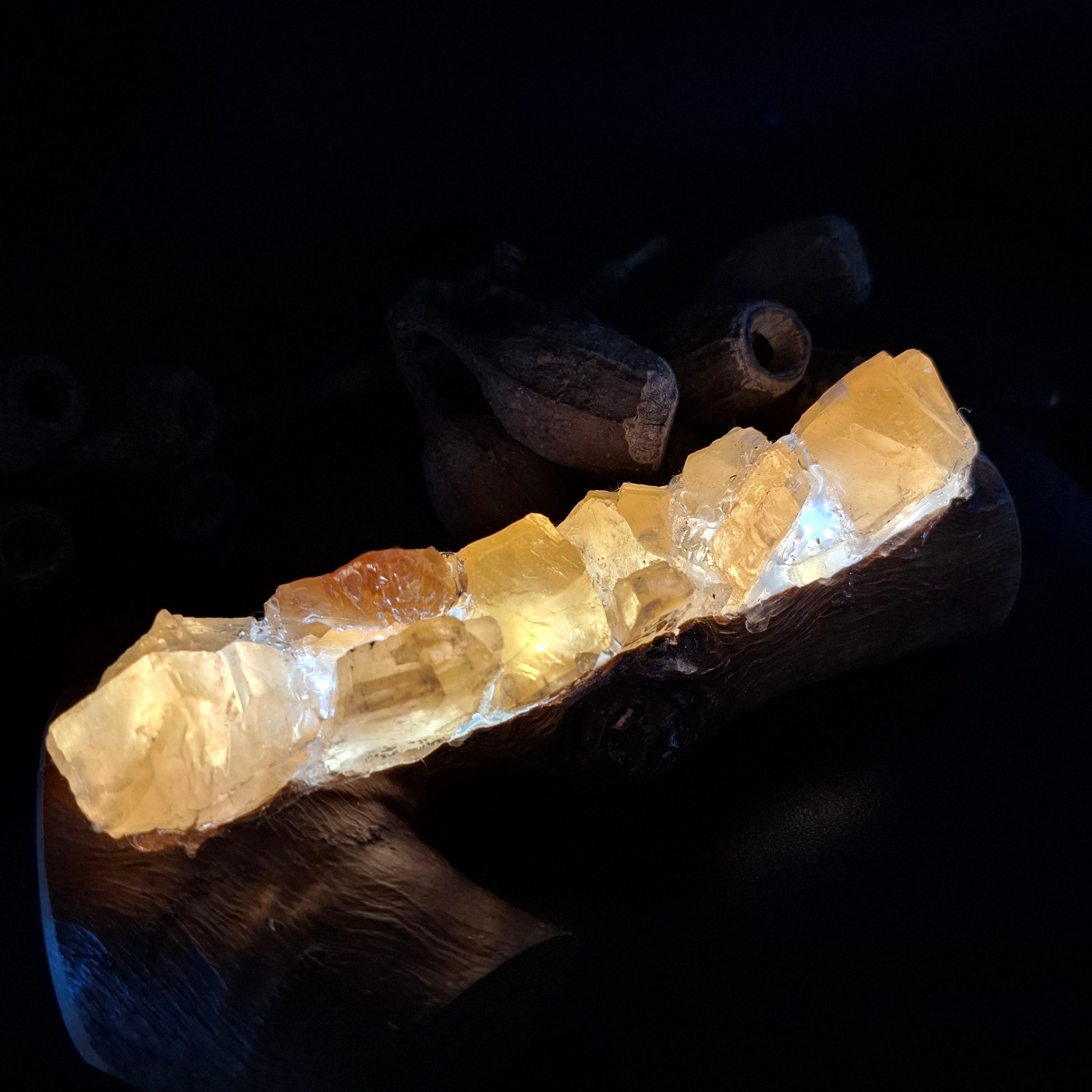 Honey calcite on warm light
